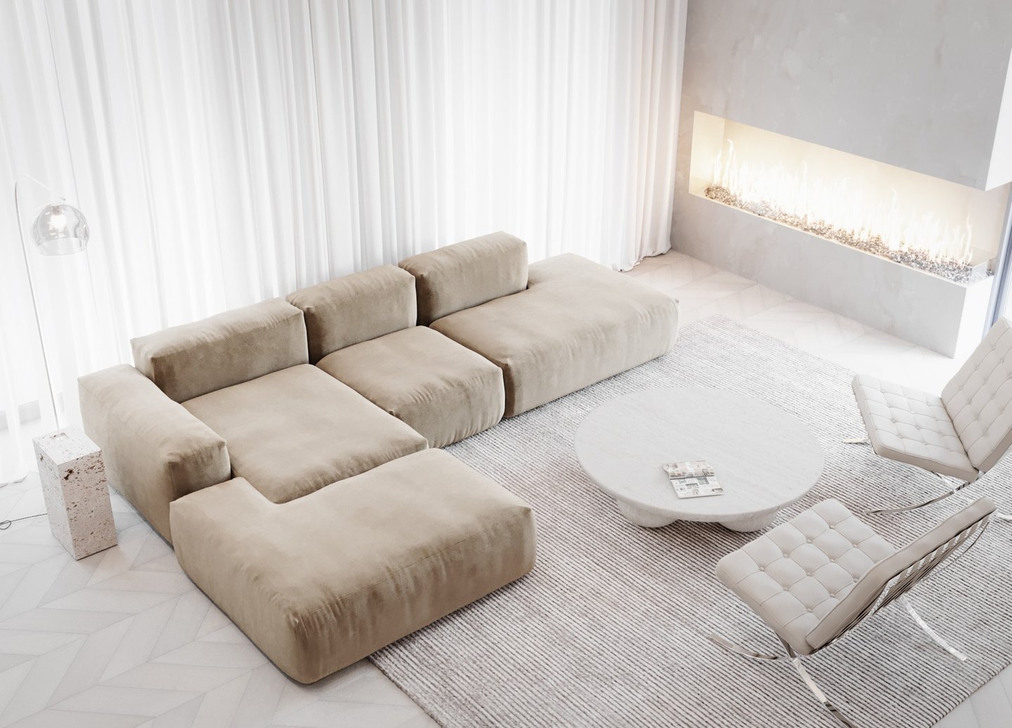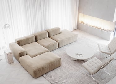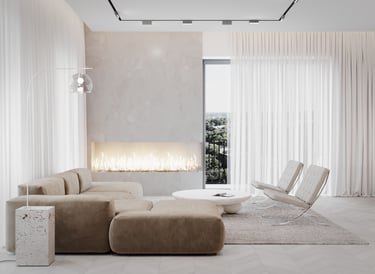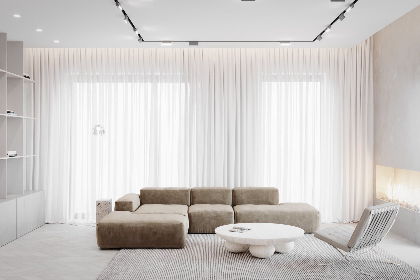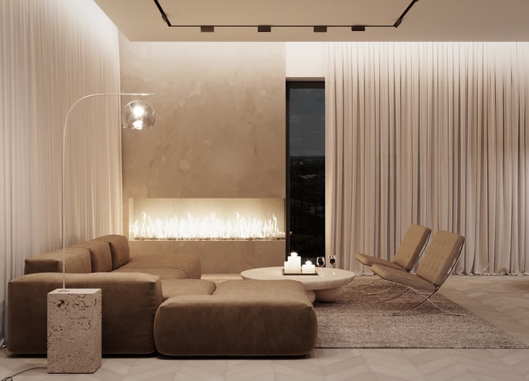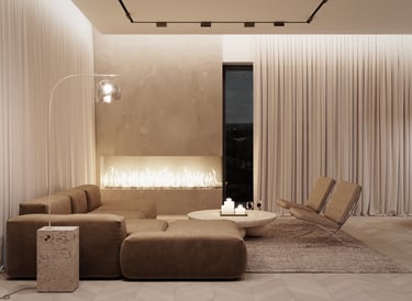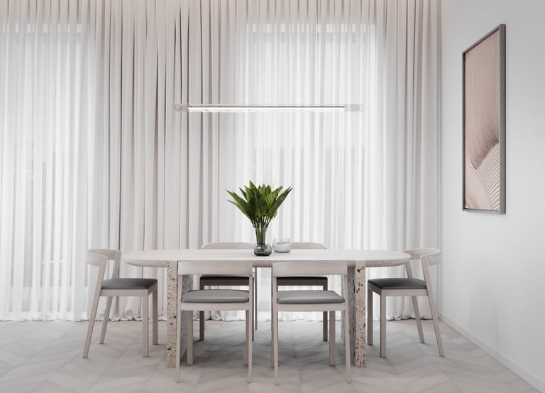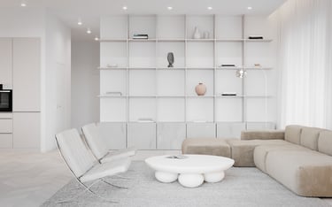 NUDE TONES AND NEATNESS ARE the DOMINANTS OF THIS INTERIOR.