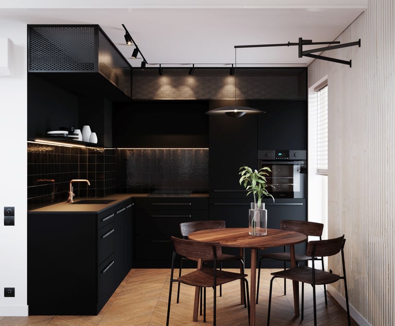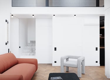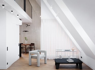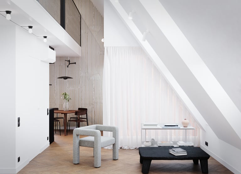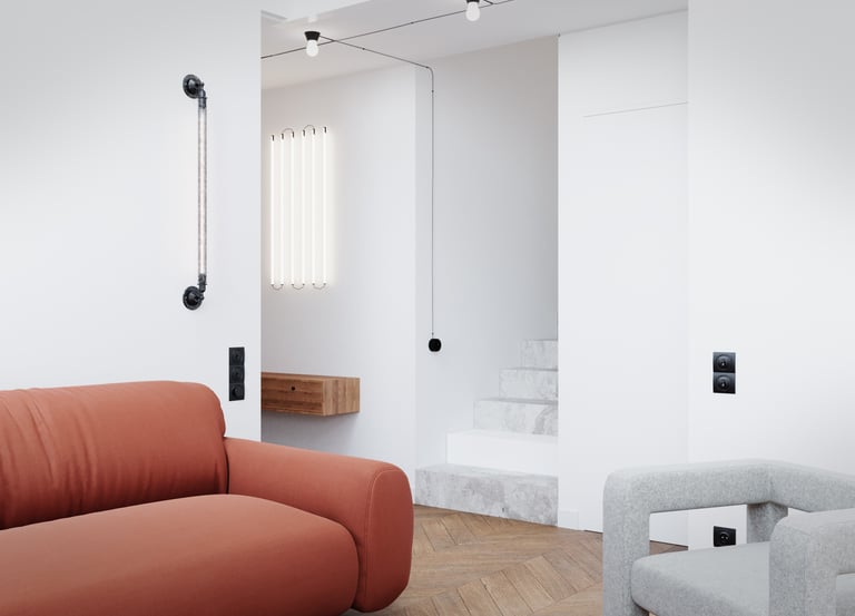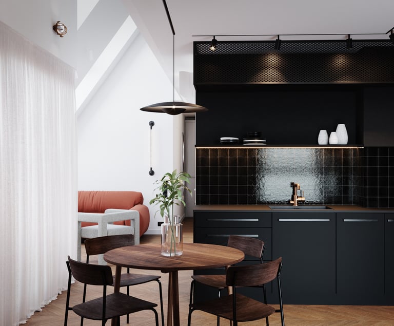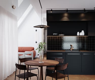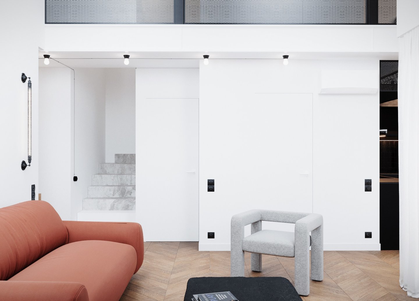 iNTERIOR WITH EARTHY TONES AND INDUSTRIAL STYLE BLACK METAL ACCENTS IN PAUPYS, vILNIUS