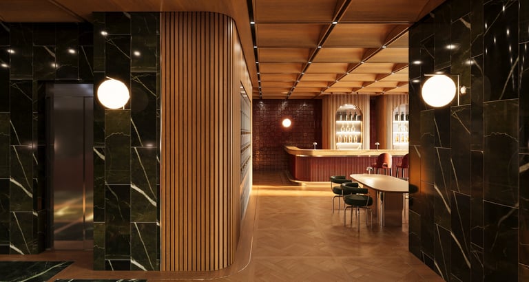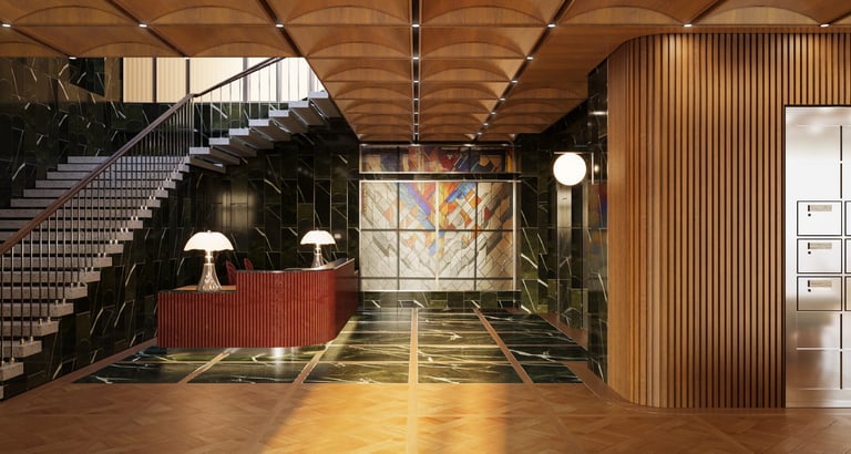 The project goal is to create spaces that honor the building’s history and architectural heritage. These spaces invite people to experience the elegance of late modernism—a time when the environment encouraged refinement, appreciation of aesthetics, and a deeper connection with the world around them. Collaboration with Creative Ops and A01 architects.