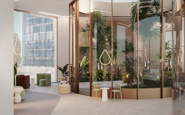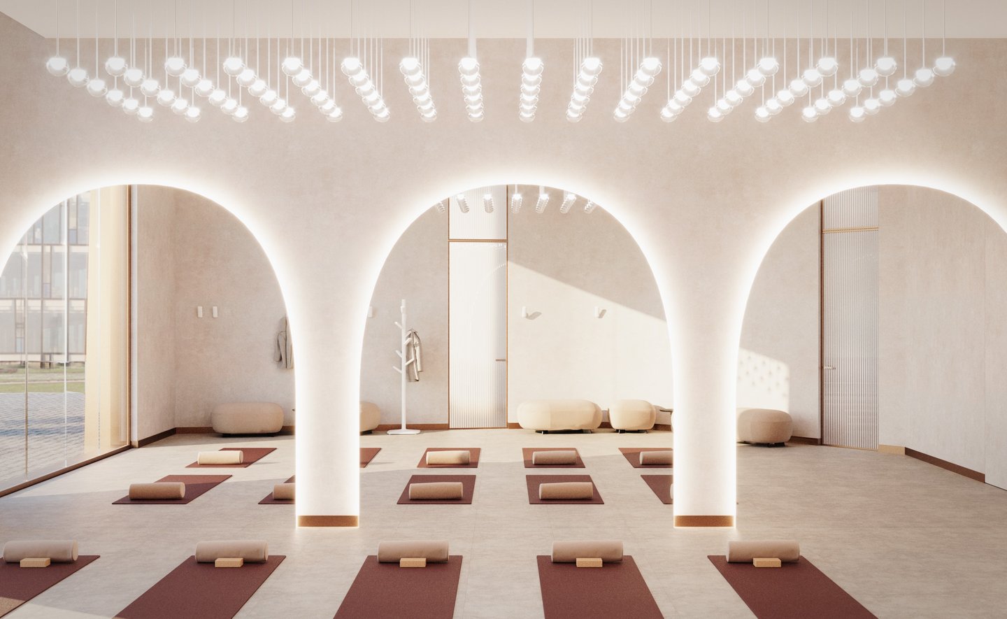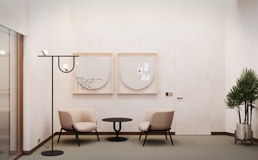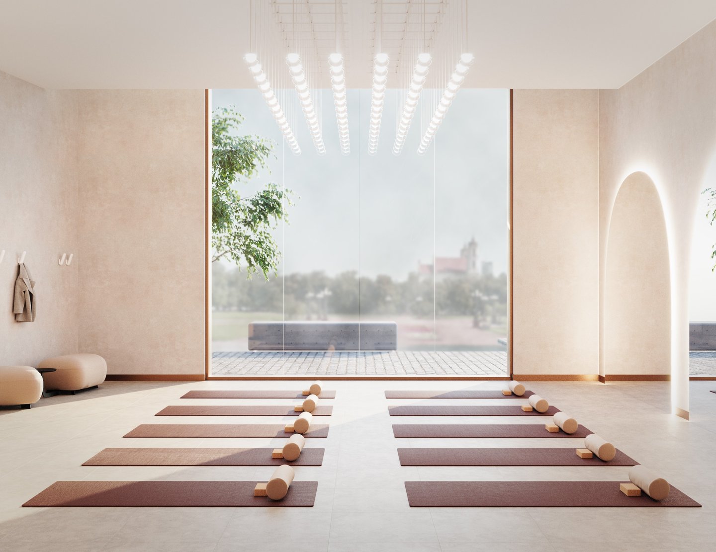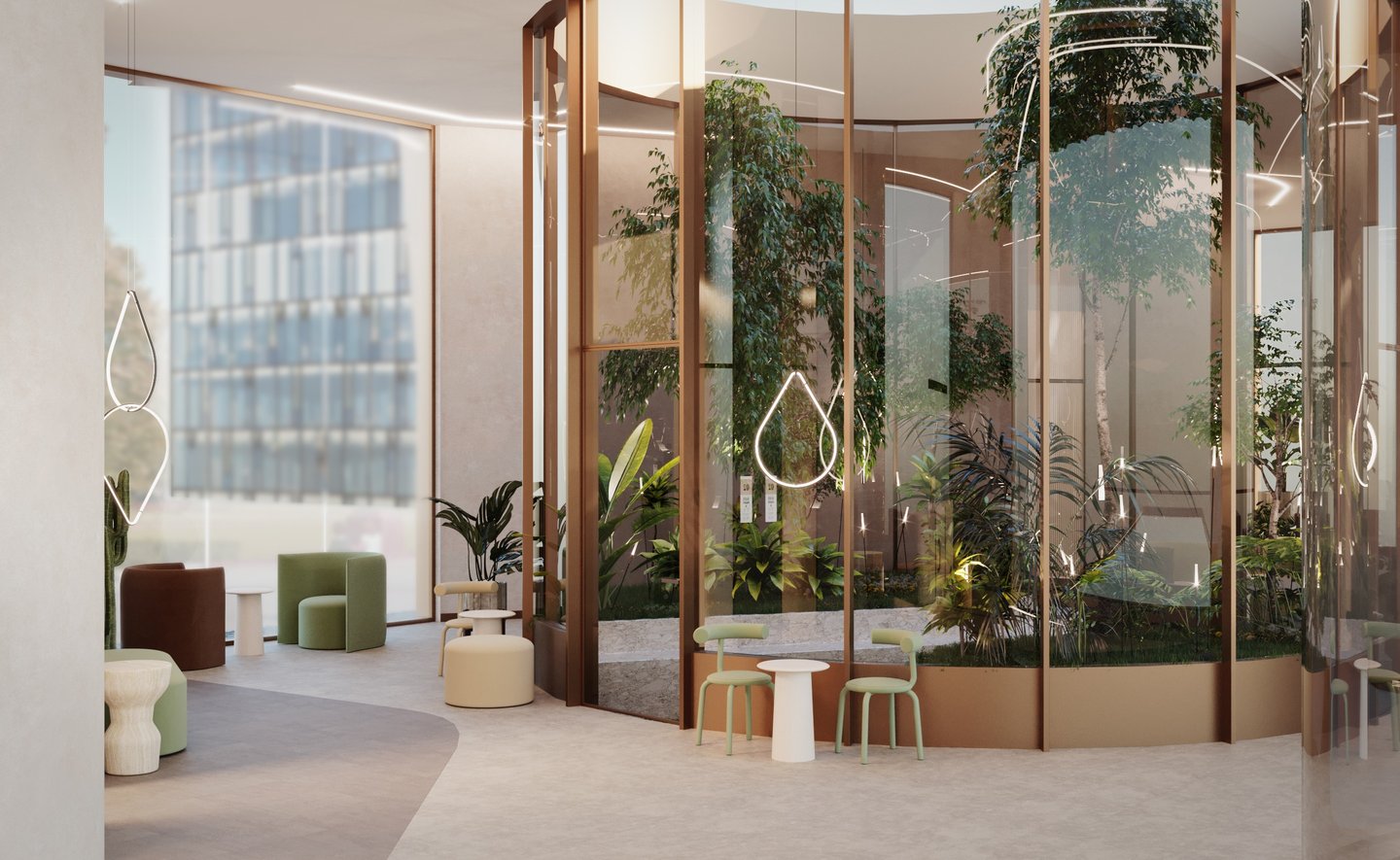 PROJECT FOR FUTURE CLINIC DESIGN CONTEST. URBAN ENVIRONMENT AND BUILDING WITH THE GARDEN IN THE MIDDLE OF IT. NATURAL AND EARTHY TONES, MINIMAL AESTHETIC AND SOME MID CENTURY STYLE ACCENTS.
